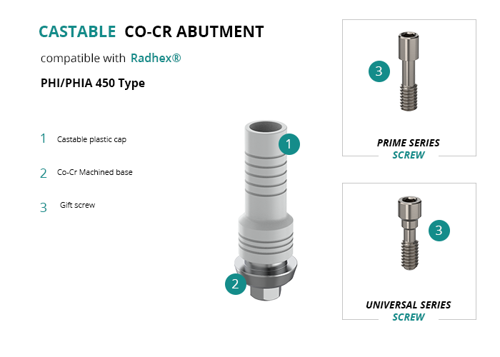 Castable Abutment with Co-Cr Base compatible with Radhex® PHI/PHIA 450 Type