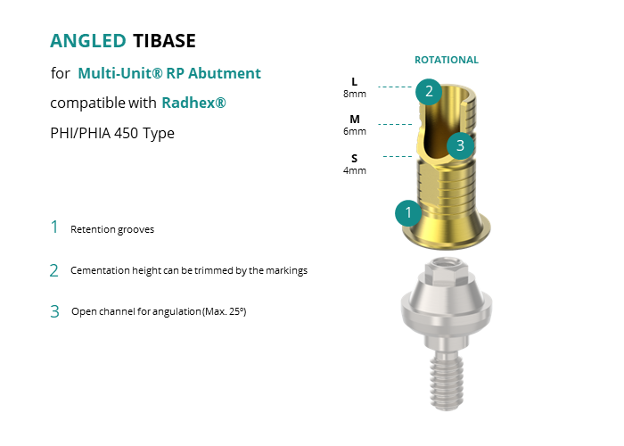 Angled Titanium Base for Multi-Unit® RP Abutment compatible with Radhex® PHI/PHIA 450 Type