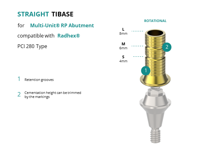Titanium Straight Base for Multi-Unit® RP Abutment compatible with Radhex® PCI 280 Type