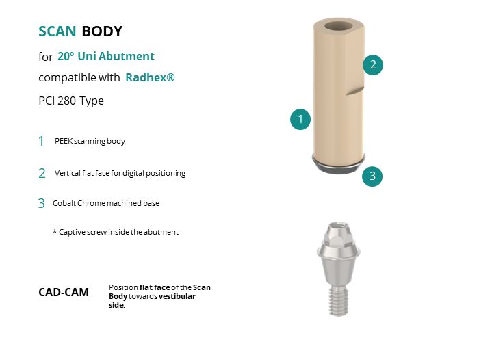Scan Body for 20� Uni Abutment compatible with Radhex® PCI 280 Type