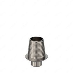 Presenta seis caras planas que aseguran la anti-rotación de la Base de Titanio Cónica dentro de la estructura protésica. Están angularmente orientadas con la conexión del implante y con la cara plana del scan body. - Hombro gingival, tiene una altura de 0.5mm aproximadamente con un acabado superficial micro-pulido que facilita el crecimiento perimetral de la mucosa gingival. Para los casos donde el implante está muy sumergido tenemos disponibles otras alturas gingivales entre 0 y 4.5mm .