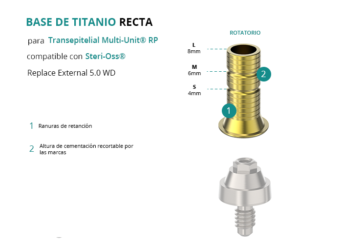 Base de Titanio Recta para Transepitelial Multi-Unit® RP compatible con Steri-Oss® Replace External 5.0 WD