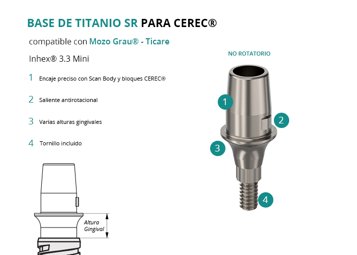 Base de Titanio SR para Cerec® compatible con Mozo Grau® - Ticare Inhex® 3.3 Mini