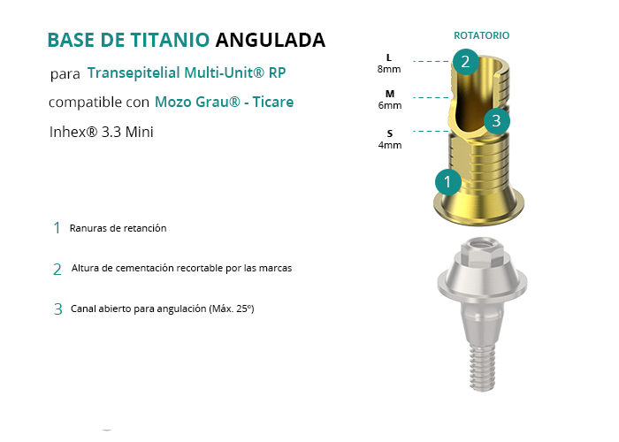 Base de Titanio Angulada para Transepitelial Multi-Unit® RP compatible con Mozo Grau® - Ticare Inhex® 3.3 Mini