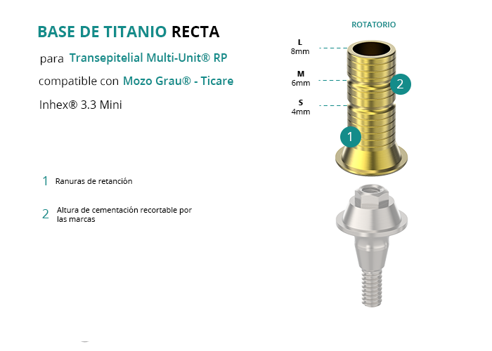 Base de Titanio Recta para Transepitelial Multi-Unit® RP compatible con Mozo Grau® - Ticare Inhex® 3.3 Mini