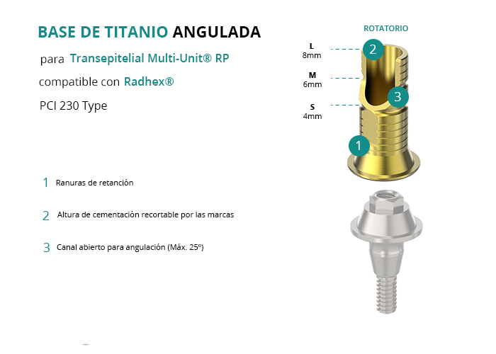 Base de Titanio Angulada para Transepitelial Multi-Unit® RP compatible con Radhex® PCI 230 Type