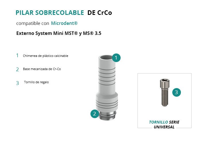 Pilar Sobrecolable de CrCo compatible con Microdent® Externo System Mini MST® y MS® 3.5