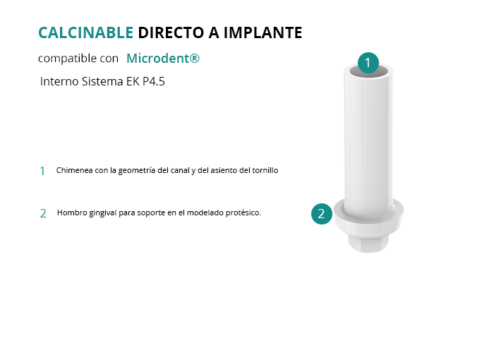 Calcinable Directo a Implante Compatible con Microdent® Interno Sistema EK P4.5