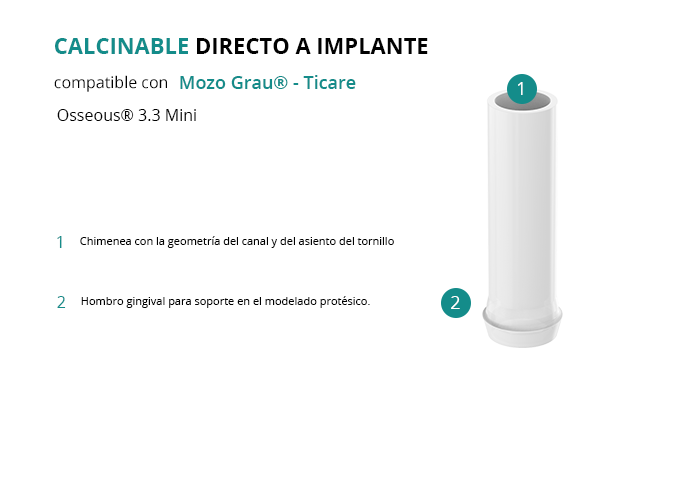 Calcinable Directo a Implante Compatible con Mozo Grau® - Ticare Osseous® 3.3 Mini