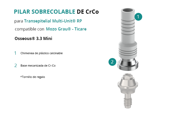 Pilar Sobrecolable de CrCo para Transepitelial Multi-Unit® RP compatible con Mozo Grau® - Ticare Osseous® 3.3 Mini