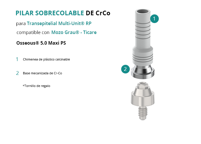 Pilar Sobrecolable de CrCo para Transepitelial Multi-Unit® RP compatible con Mozo Grau® - Ticare Osseous® 5.0 Maxi PS