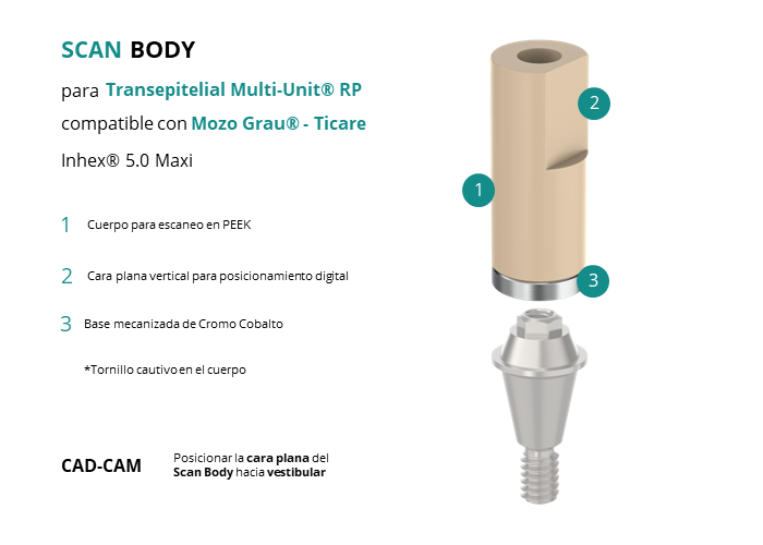 Scan Body para Transepitelial Multi-Unit® RP compatible con Mozo Grau® - Ticare Inhex® 5.0 Maxi