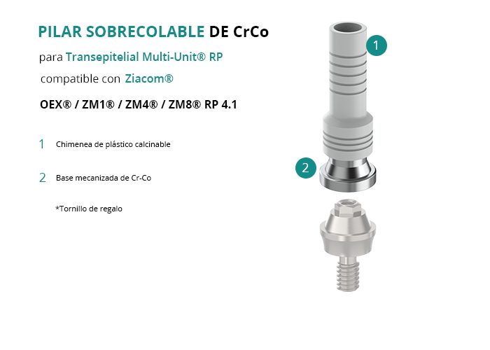 Pilar Sobrecolable de CrCo para Transepitelial Multi-Unit® RP compatible con Ziacom® OEX® / ZM1® / ZM4® / ZM8® RP 4.1