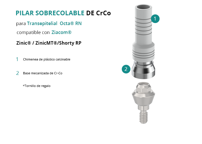 Pilar Sobrecolable de CrCo para Transepitelial Octa® RN compatible con Ziacom® Zinic® / ZinicMT®/Shorty RP