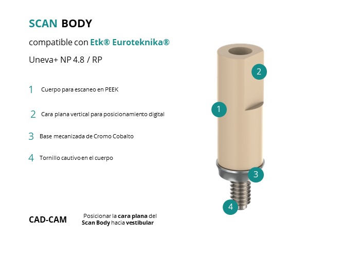Scan Body compatible con Etk® Euroteknika® Uneva+ NP 4.8 / RP