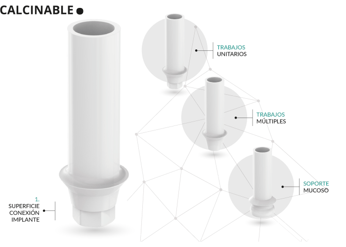 La unión del calcinable con el implante se realiza mediante el tornillo del implante correspondiente.