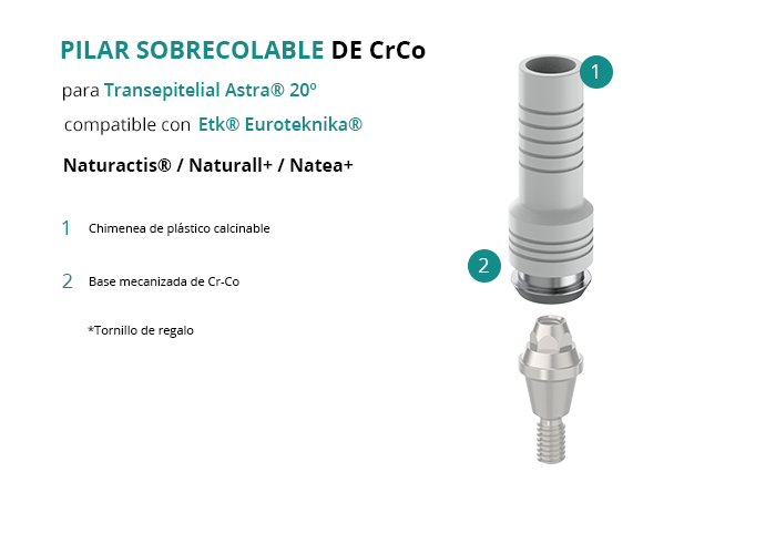 Pilar Sobrecolable de CrCo para Transepitelial Astra® 20º compatible con Etk® Euroteknika® Naturactis® / Naturall+ / Natea+
