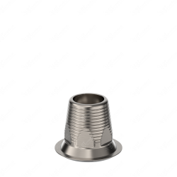 Presenta seis caras planas que aseguran la anti-rotación de la Base de Titanio Cónica dentro de la estructura protésica. Están angularmente orientadas con la conexión del implante y con la cara plana del scan body. - Hombro gingival, tiene una altura de 0.5mm aproximadamente con un acabado superficial micro-pulido que facilita el crecimiento perimetral de la mucosa gingival. Para los casos donde el implante está muy sumergido tenemos disponibles otras alturas gingivales entre 0 y 4.5mm .