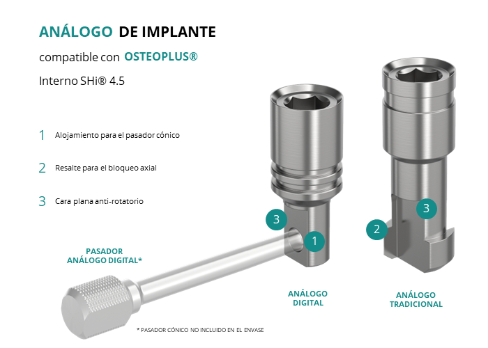 El análogo de GT-Medical compatible con la línea de implantes Interno SHi® 4.5 de la marca Osteoplus®, está fabricado en Acero Inoxidable, tiene un diámetro de 4.5mm, y replica con exactitud la conexión de este implante de Osteoplus®.