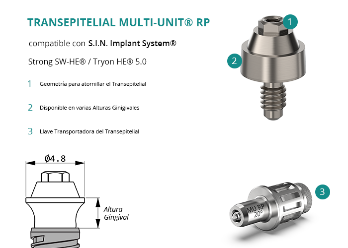 Transepitelial Multi-Unit® RP compatible con S.I.N. Implant System® Strong SW-HE® / Tryon HE® 5.0