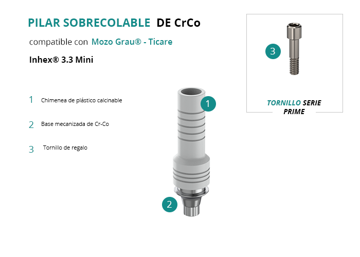 Pilar Sobrecolable de CrCo compatible con Mozo Grau® - Ticare Inhex® 3.3 Mini