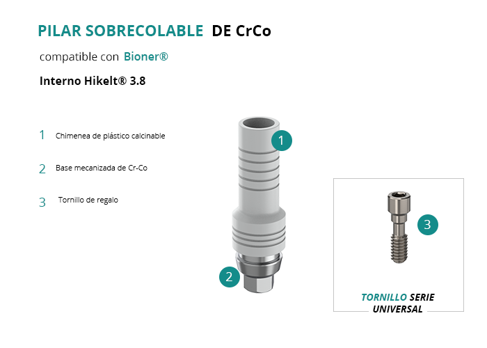 Pilar Sobrecolable de CrCo compatible con Bioner® Interno Hikelt® 3.8