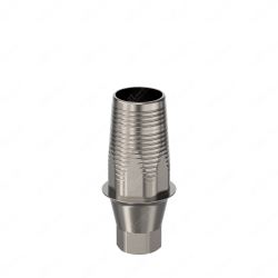 Presenta seis caras planas que aseguran la anti-rotación de la Base de Titanio Cónica dentro de la estructura protésica. Están angularmente orientadas con la conexión del implante y con la cara plana del scan body. - Hombro gingival, tiene una altura de 0.5mm aproximadamente con un acabado superficial micro-pulido que facilita el crecimiento perimetral de la mucosa gingival. Para los casos donde el implante está muy sumergido tenemos disponibles otras alturas gingivales entre 0 y 4.5mm .