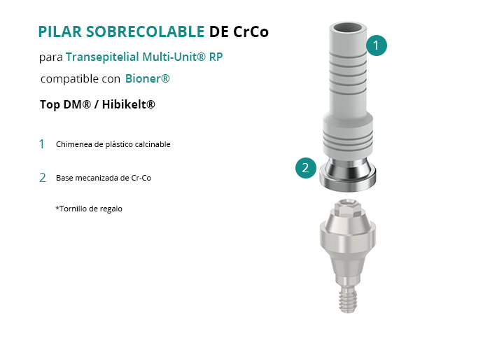Pilar Sobrecolable de CrCo para Transepitelial Multi-Unit® RP compatible con Bioner® Top DM® / Hibikelt®