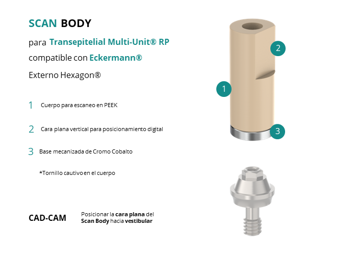 Scan Body para Transepitelial Multi-Unit® RP compatible con Eckermann® Externo Hexagon®