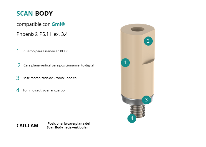 Scan Body compatible con Gmi® Phoenix® P5.1 Hex. 3.4