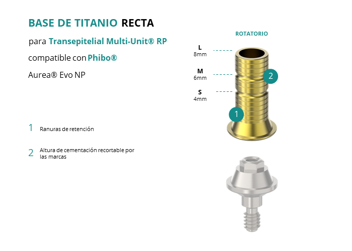 Base de Titanio Recta para Transepitelial Multi-Unit® RP compatible con Phibo® Aurea® Evo NP