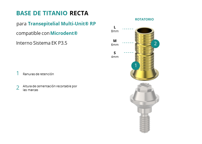 Base de Titanio Recta para Transepitelial Multi-Unit® RP compatible con Microdent® Interno Sistema EK P3.5