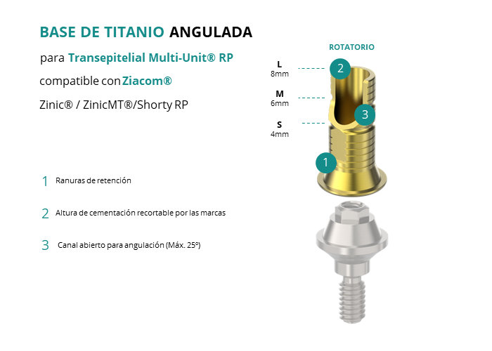 Base de Titanio Angulada para Transepitelial Multi-Unit® RP compatible con Ziacom® Zinic® / ZinicMT®/Shorty RP