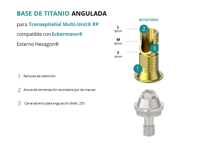 Base de Titanio Angulada para Transepitelial Multi-Unit® RP compatible con Eckermann® Externo Hexagon®