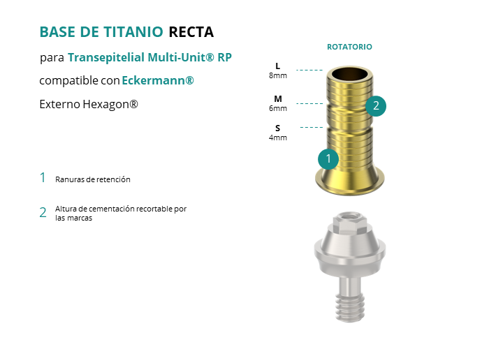 Base de Titanio Recta para Transepitelial Multi-Unit® RP compatible con Eckermann® Externo Hexagon®