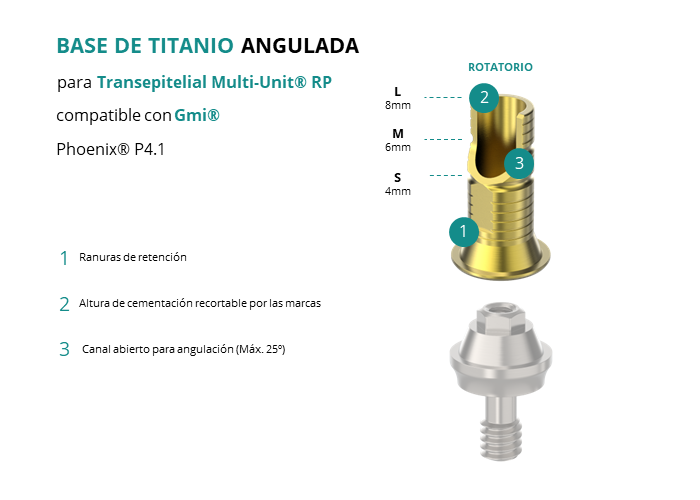 Base de Titanio Angulada para Transepitelial Multi-Unit® RP compatible con Gmi® Phoenix® P4.1
