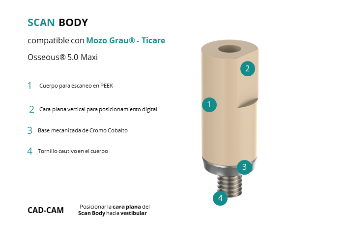 Scan Body compatible con Mozo Grau® - Ticare Osseous® 5.0 Maxi