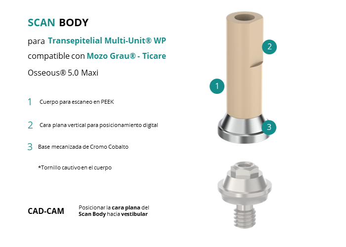 Scan Body para Transepitelial Multi-Unit® WP compatible con Mozo Grau® - Ticare Osseous® 5.0 Maxi