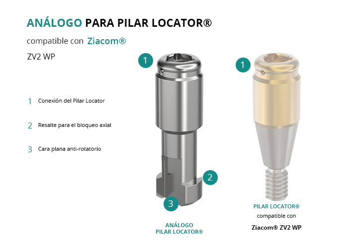 Análogo para Pilar Locator® Compatible con Ziacom® ZV2 WP