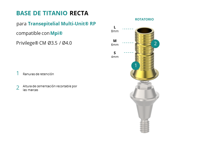 Base de Titanio Recta para Transepitelial Multi-Unit® RP compatible con Mpi® Privilege® CM Ø3.5 / Ø4.0