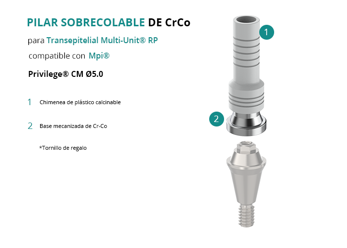 Pilar Sobrecolable de CrCo para Transepitelial Multi-Unit® RP compatible con Mpi® Privilege® CM Ø5.0