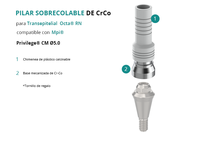 Pilar Sobrecolable de CrCo para Transepitelial Octa® RN compatible con Mpi® Privilege® CM Ø5.0