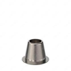 Presenta seis caras planas que aseguran la anti-rotación de la Base de Titanio Cónica dentro de la estructura protésica. Están angularmente orientadas con la conexión del implante y con la cara plana del scan body. - Hombro gingival, tiene una altura de 0.5mm aproximadamente con un acabado superficial micro-pulido que facilita el crecimiento perimetral de la mucosa gingival. Para los casos donde el implante está muy sumergido tenemos disponibles otras alturas gingivales entre 0 y 4.5mm .