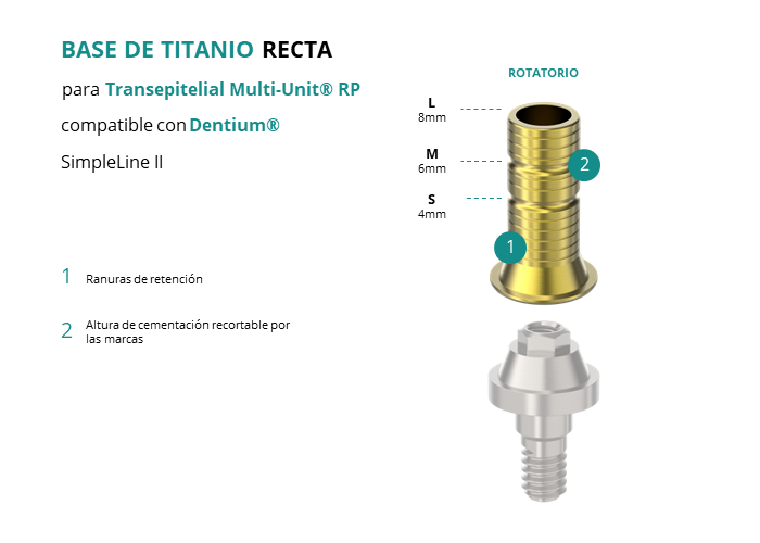 Base de Titanio Recta para Transepitelial Multi-Unit® RP compatible con Dentium® SimpleLine II