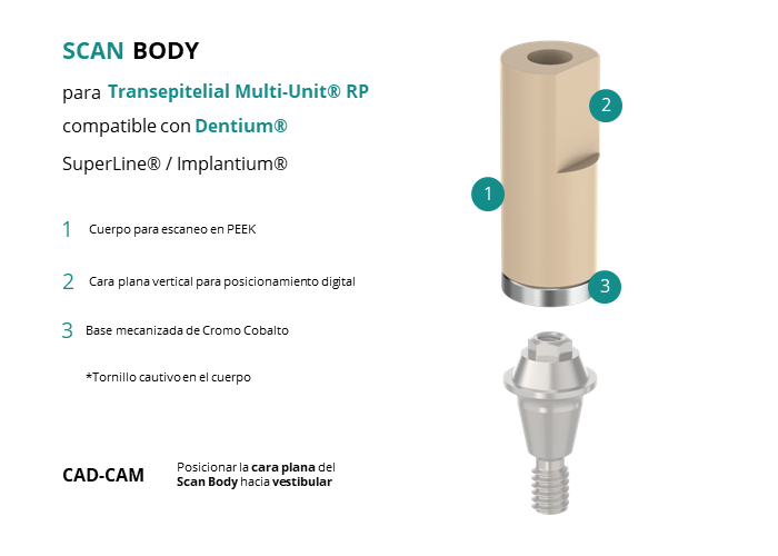 Scan Body para Transepitelial Multi-Unit® RP compatible con Dentium® SuperLine® / Implantium®