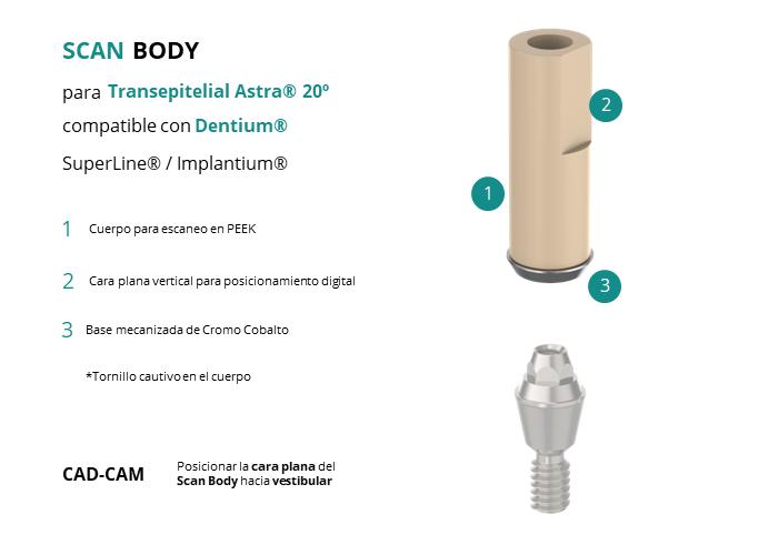 Scan Body para Transepitelial Astra® 20� compatible con Dentium® SuperLine® / Implantium®