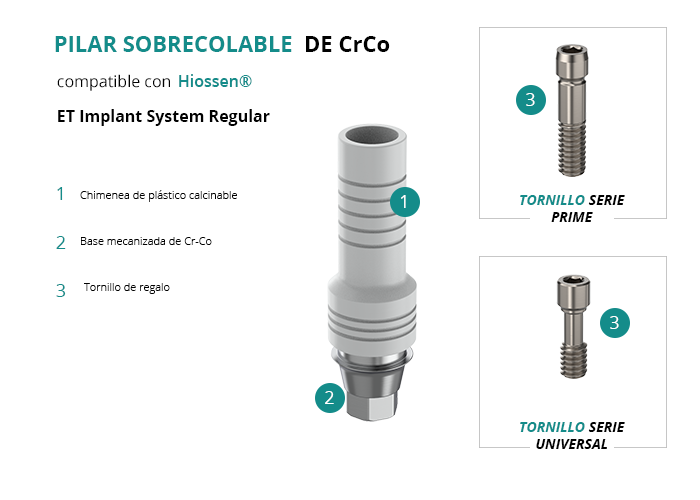 Pilar Sobrecolable de CrCo compatible con Hiossen® ET Implant System Regular