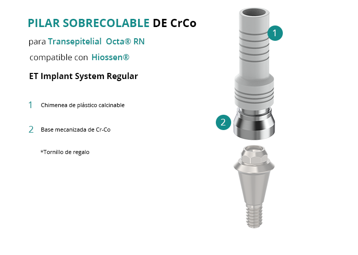Pilar Sobrecolable de CrCo para Transepitelial Octa® RN compatible con Hiossen® ET Implant System Regular