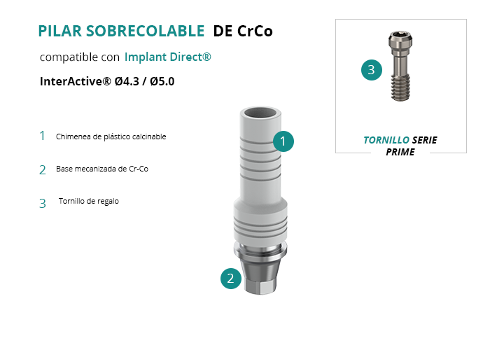Pilar Sobrecolable de CrCo compatible con Implant Direct® InterActive® Ø4.3 / Ø5.0