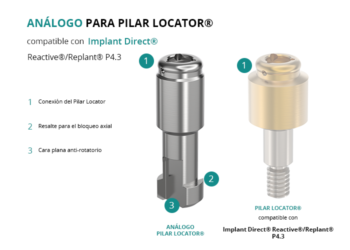 Análogo para Pilar Locator® Compatible con Implant Direct® Reactive®/Replant® P4.3